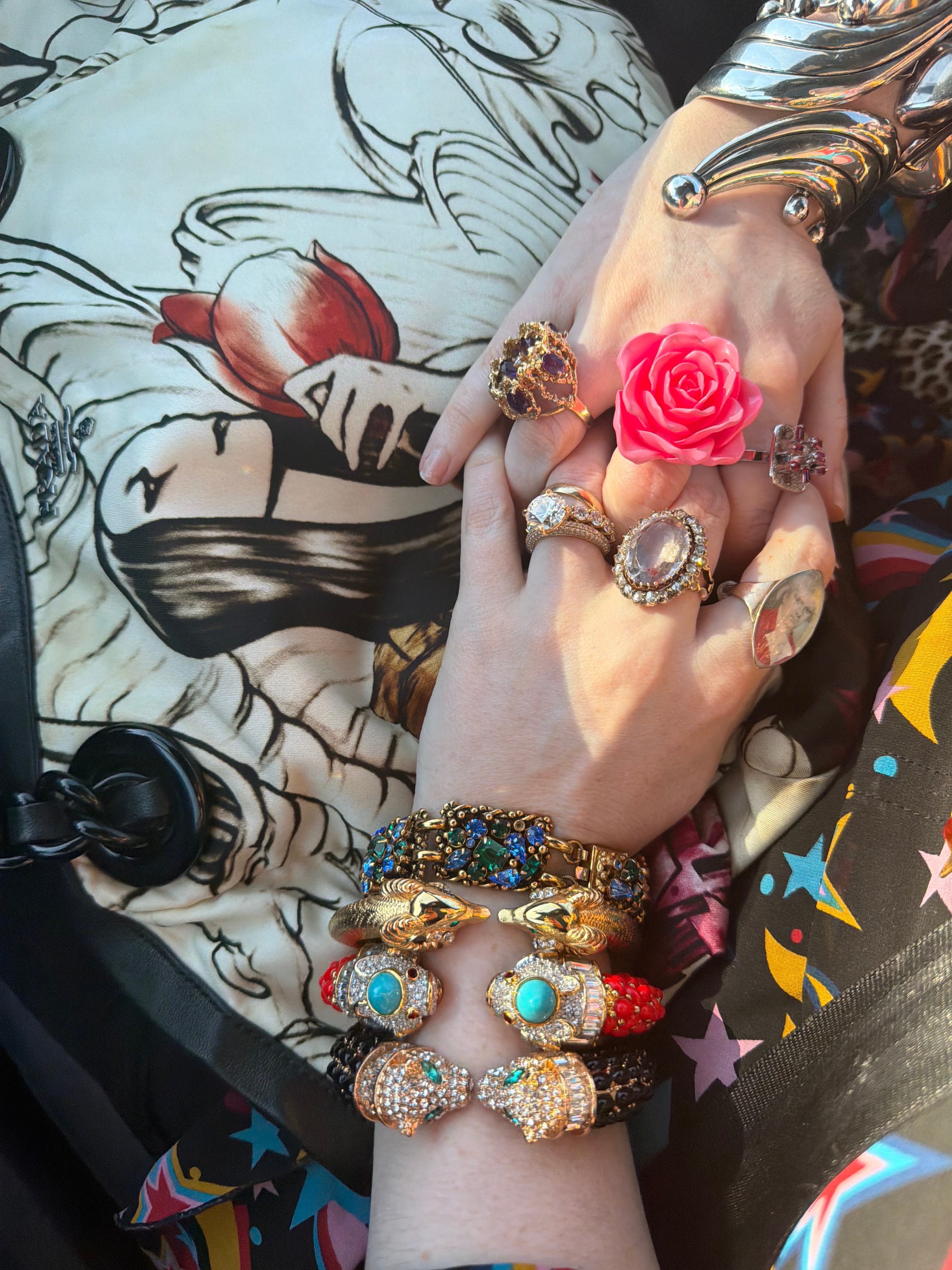 We’ve reached peak vintage fashion, and I see antique (defined as 100+ years old) as the next niche of the secondhand shopping journey. I reported on this briefly for Elle in June 2025. Designers including Anna Sui, Jonathan Anderson, Daniel Roseberry, Simone Rocha and so many others have cited antique silhouettes, movements or objects as inspiration in recent collections. Some of the most interesting stylists of our time, like Genesis Webb and Chloë Felopulos, are using real antique fashion in their styling work. It’s not about looking like you’re a historical reenactor. But mixing very special 100+ year old pieces into your wardrobe, like a 1920s piano shawl, Victorian snake necklace or beautiful Edwardian beaded bag feels really special. Antique jewelry is one of the easiest ways to tap into the trend.